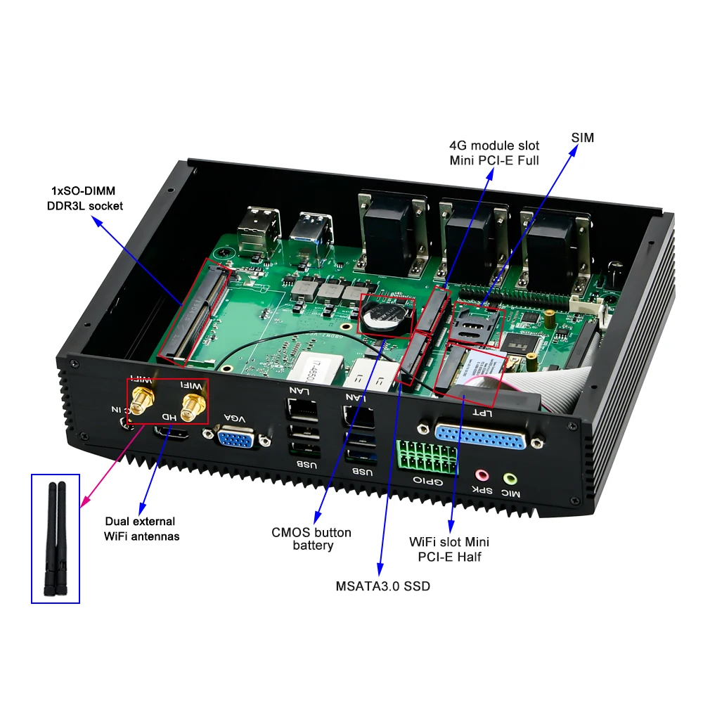 - GPIO, LPT, 6COM, HDMI, VGA, USB, MIC, SPK rich ports.