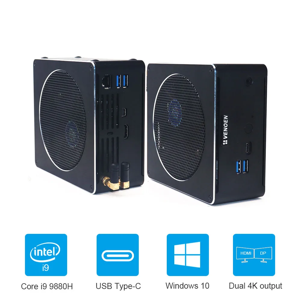 i9 Mini PC Intel 9880H Windows10 linux 8 Cores 16 Threads M.2 NGFF NVME HD Mini DP Type-C tiny desktop computer industrial