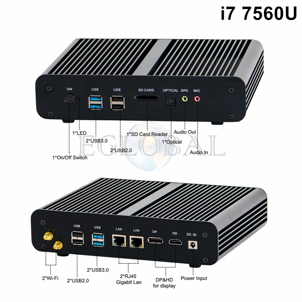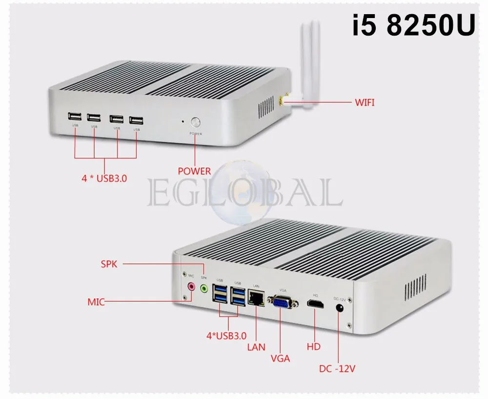 2019 Eglobal Windows 10 Mini Pc Gamer Core I5 8250U Fanless Nuc Intel Core i7 8550U Barebone 4K Portable Desktop Computers