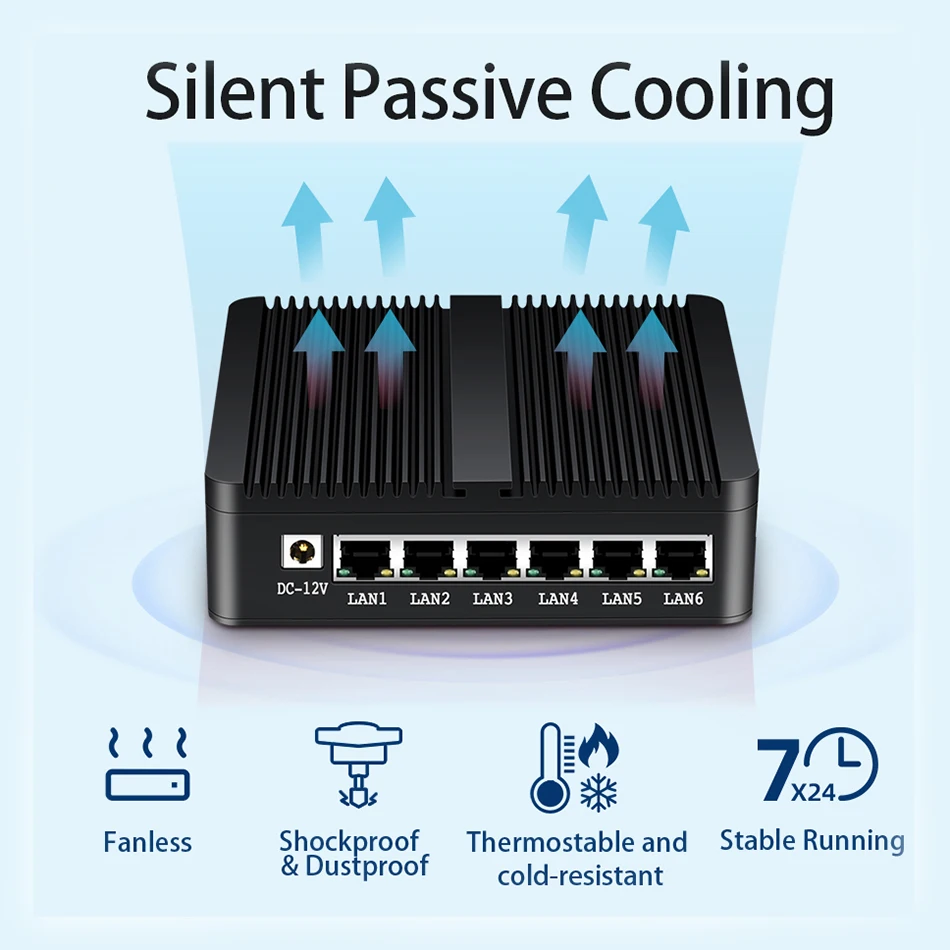 6*Intel i211AT Gigabit Ethernet Controller6-LAN ethernet ports build router firewall, pfsense OS, Intelligent flow control on the network.