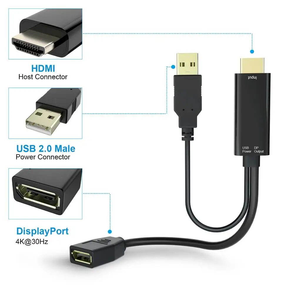 | HDMI Male Extensions 3840x2160 UHD 4K to DisplayPort Female Adapter 15cm Cable with USB2.0 Power for HDMI PC DP Dosplay |
