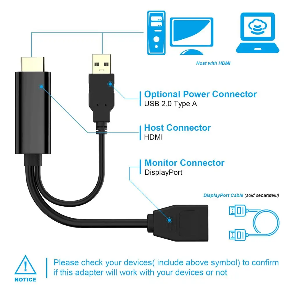 This cable allow you to connect from your HDMI output device to your DisplayPort Displays(A seperately DP cable is needed,but not included)