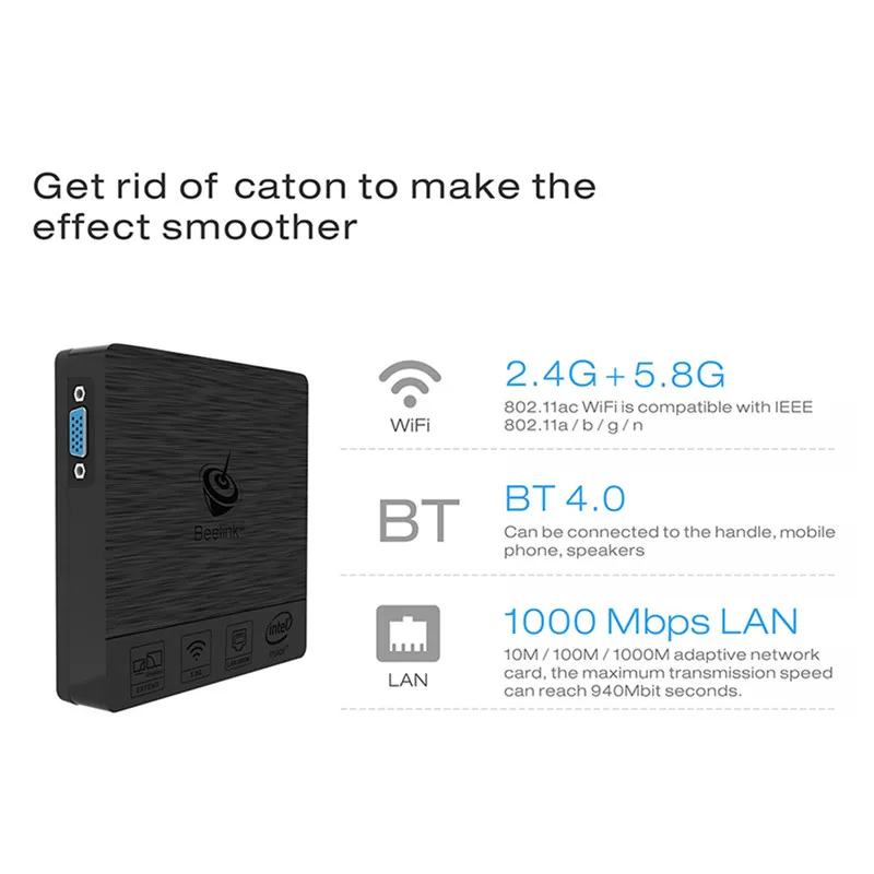 | Beelink BT3 Pro Mini PC Intel Atom X5-Z8350 4GB 64GB Support 5.8G WiFi BT4.0 1000Mbps Media Player Support Windows 10 Linux PC |