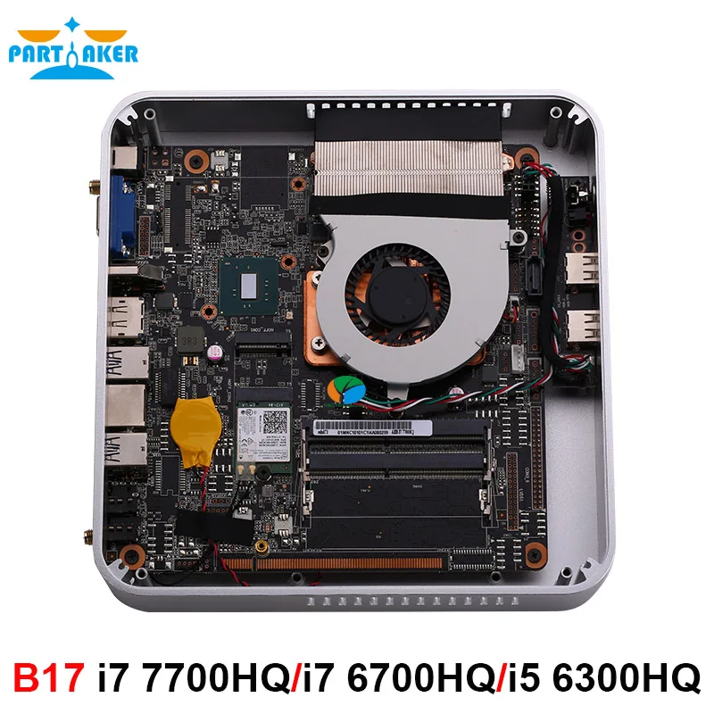 Partaker Intel Core i7 7700HQ i7 6700HQ i5 6300HQ Mini PC Windows 10 Barebone Computer DDR4 32GB RAM 512GB SSD 4K HTPC HDMI DP