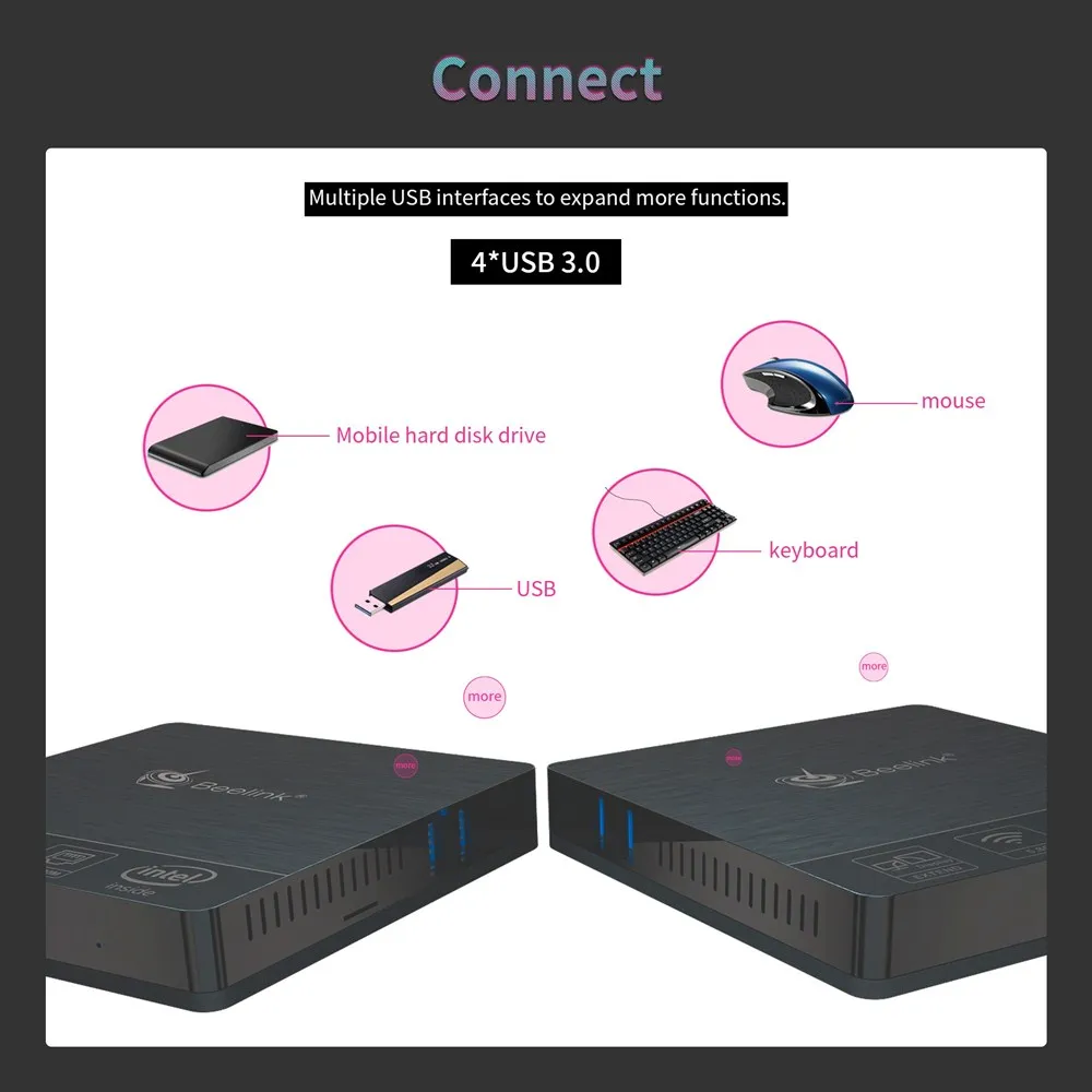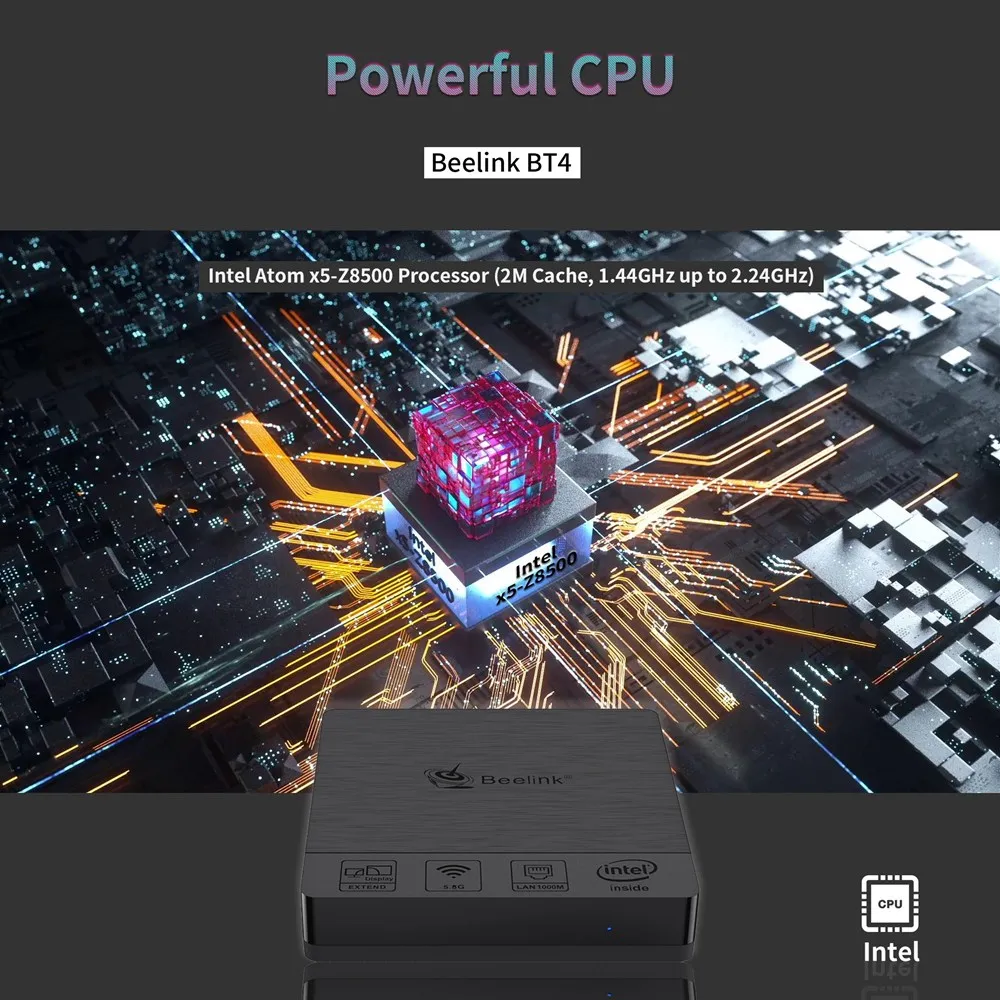 Beelink BT4 Desktop Mini PC Intel Atom X5-Z8500 Intel HD Graphics 600 4GB RAM 64GB EMMC 2.4G/5.8G WiFi 1000Mbps USB3.0 BT4.0 4K