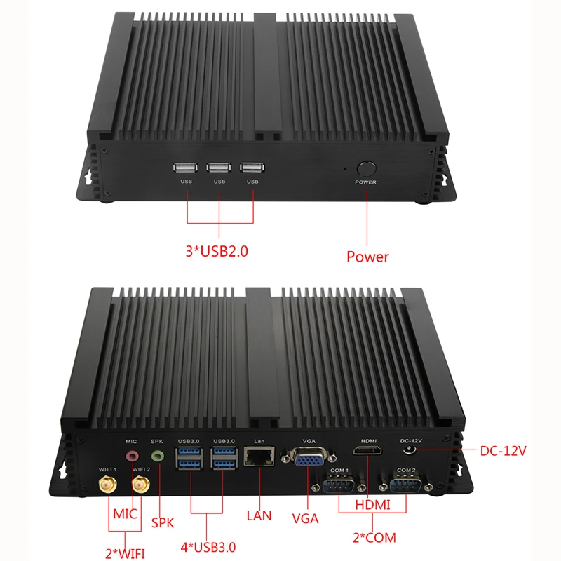 Mic, Speaker, 4*USB 3.0, 3*USB 2.0,1*RJ45 Gigabit LAN, 1*VGA, 1*HDMI, 1*DC12V In