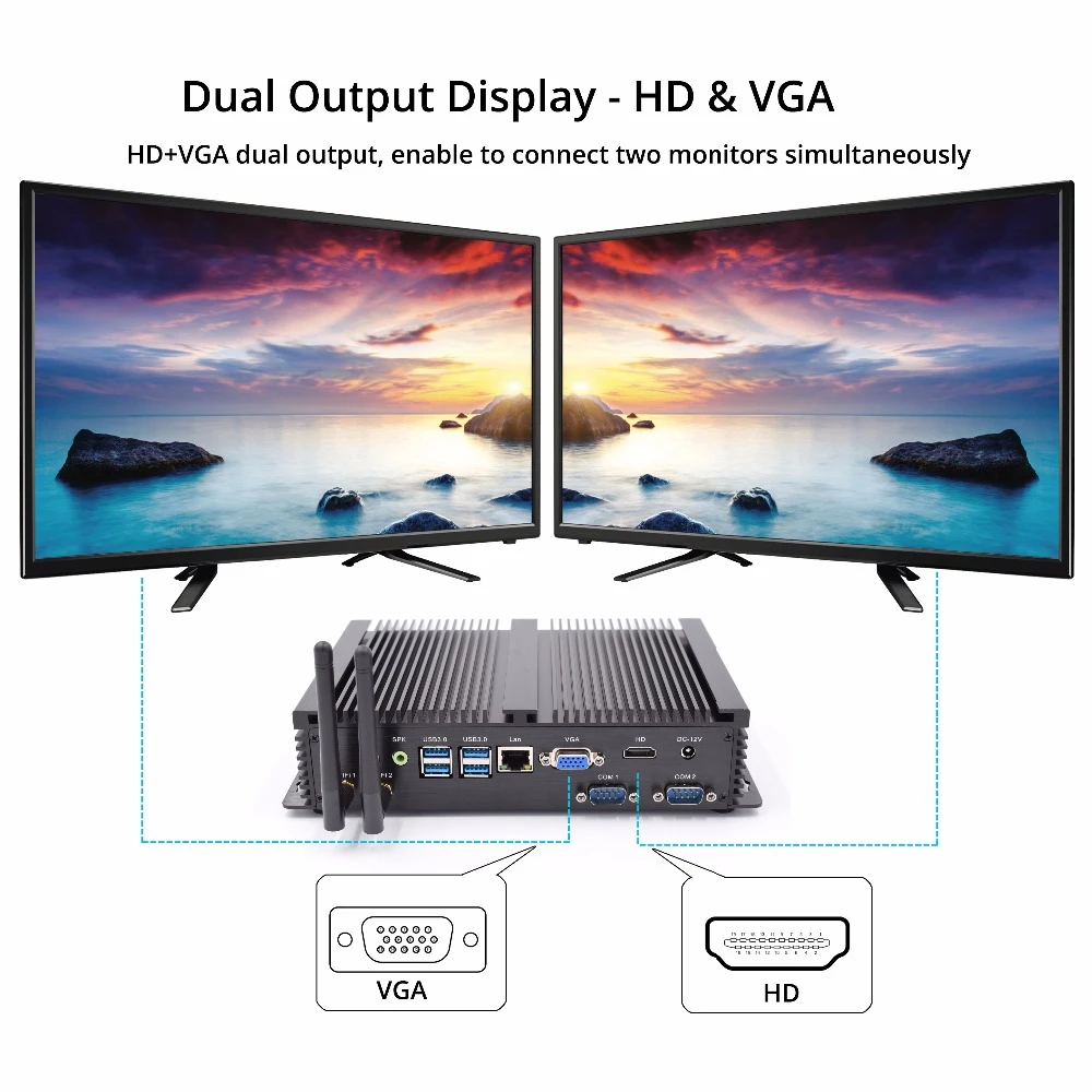 XCY Intel Core i5 7200U i3 7100U i7 4500U Fanless Mini PC Windows 10 4K HTPC Thin Client Desktop Computer NUC HDMI VGA WiFi 6USB