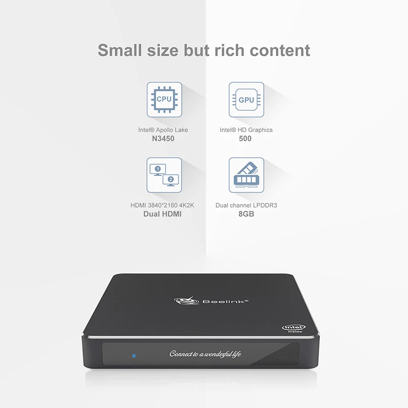 | Beelink Gemini T34 win10 fanless Mini PC intel N3450 8GB 128/256/512GB SSD 1000Mbps BT 4.0 Support Dual Screen Display Mini PC |
