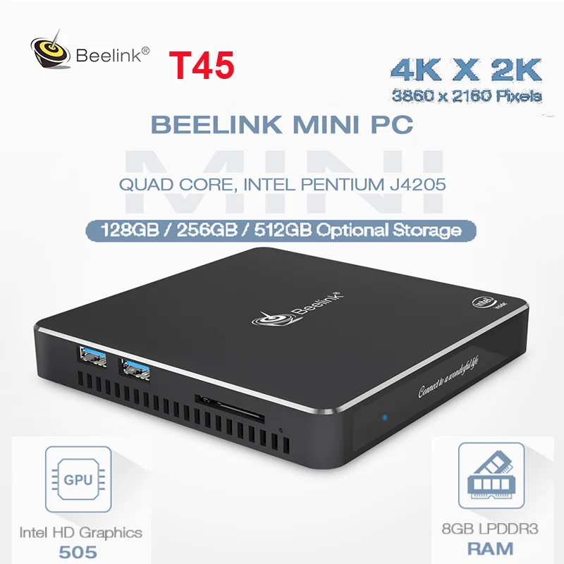 Beelink Gemini T45 mini PC intel Pentium J4205 quad core 8GB DDR3 256GB SSD 2.4/5.8GHz WiFi windows 10 mini fanless computer NUC