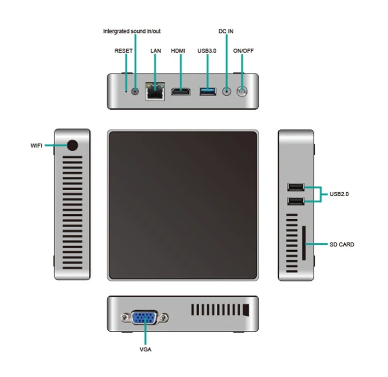 2G RAM 32G SSD Z8350 EMMC Mini linux pc Atom Z8350f Embedded Computer for home office