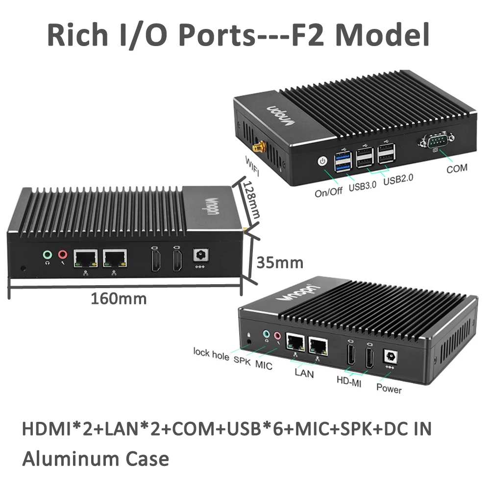 | K900F2 Fanless J3160 Quad-core Industrial Mini PC VDI PCoIP Router Windows 10 Intel Dual LAN HDMI COM Office Firewall Computer |