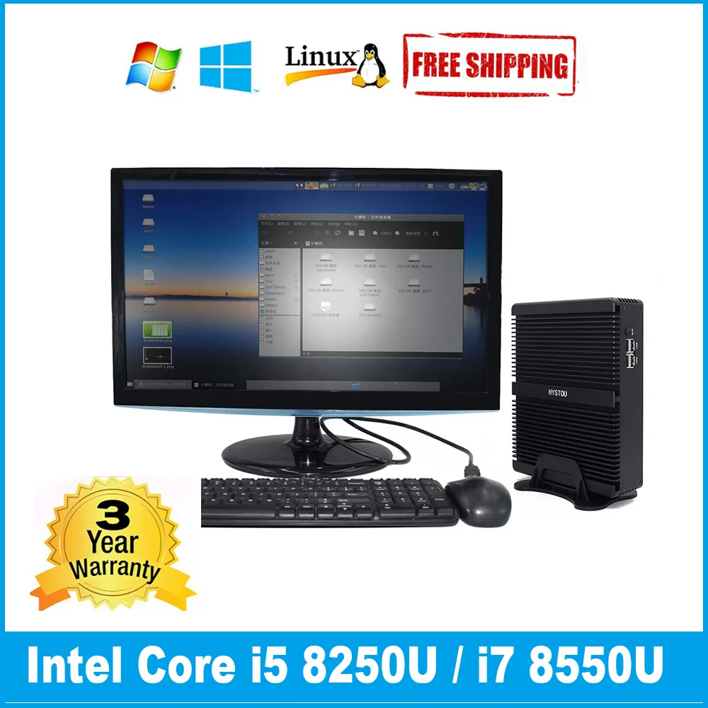 | Newest 8TH Gen Quad i7 8550U Core Industrial Computer Fanless PC Server i5 8250U linux HDMI 2.0 DP 3 Years Warranty Desktop |